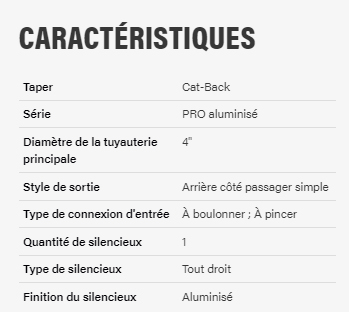 Longueur du corps principal: 36cmLongueur de la sortie 10cmDiametre entrée: 57mm100 % inoxHomologué, CEEGarantie à vie 1er utilisateur